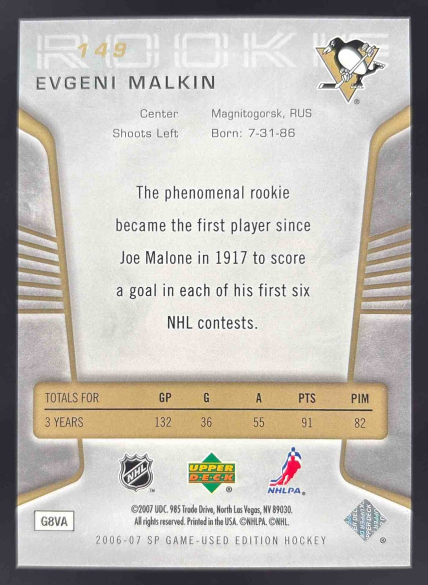 2006-07 SP Game Used #149 Evgeni Malkin RC /999