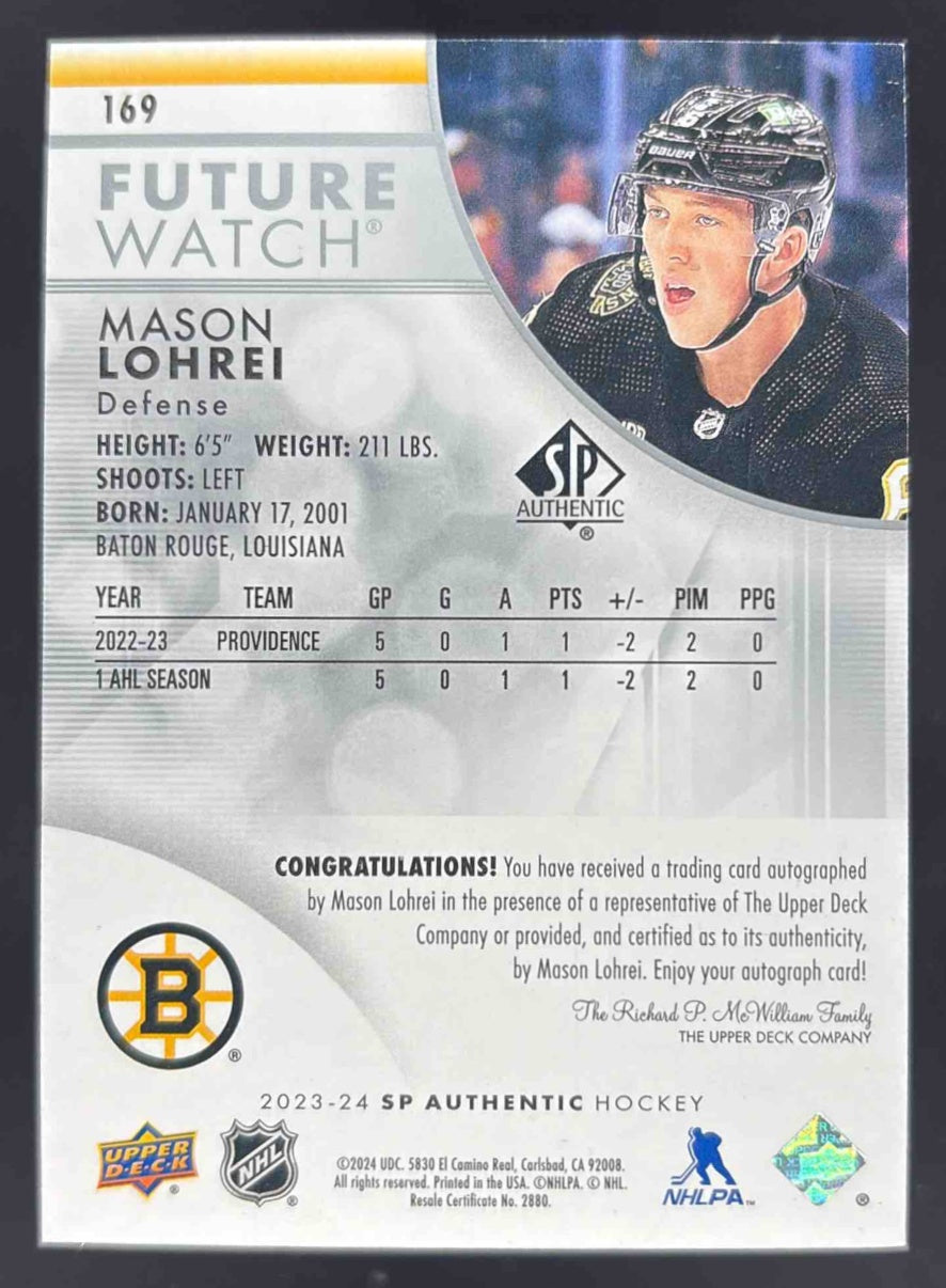 2023-24 SP Authentic #169 Mason Lohrei RC Future Watch /999