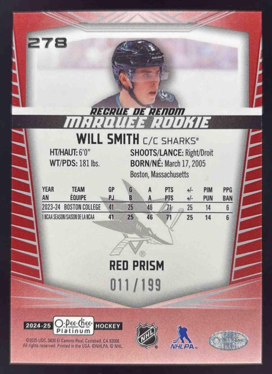 2024-25 O-Pee-Chee Platinum Red Prism #278 Will Smith RC Marquee Rookie /199