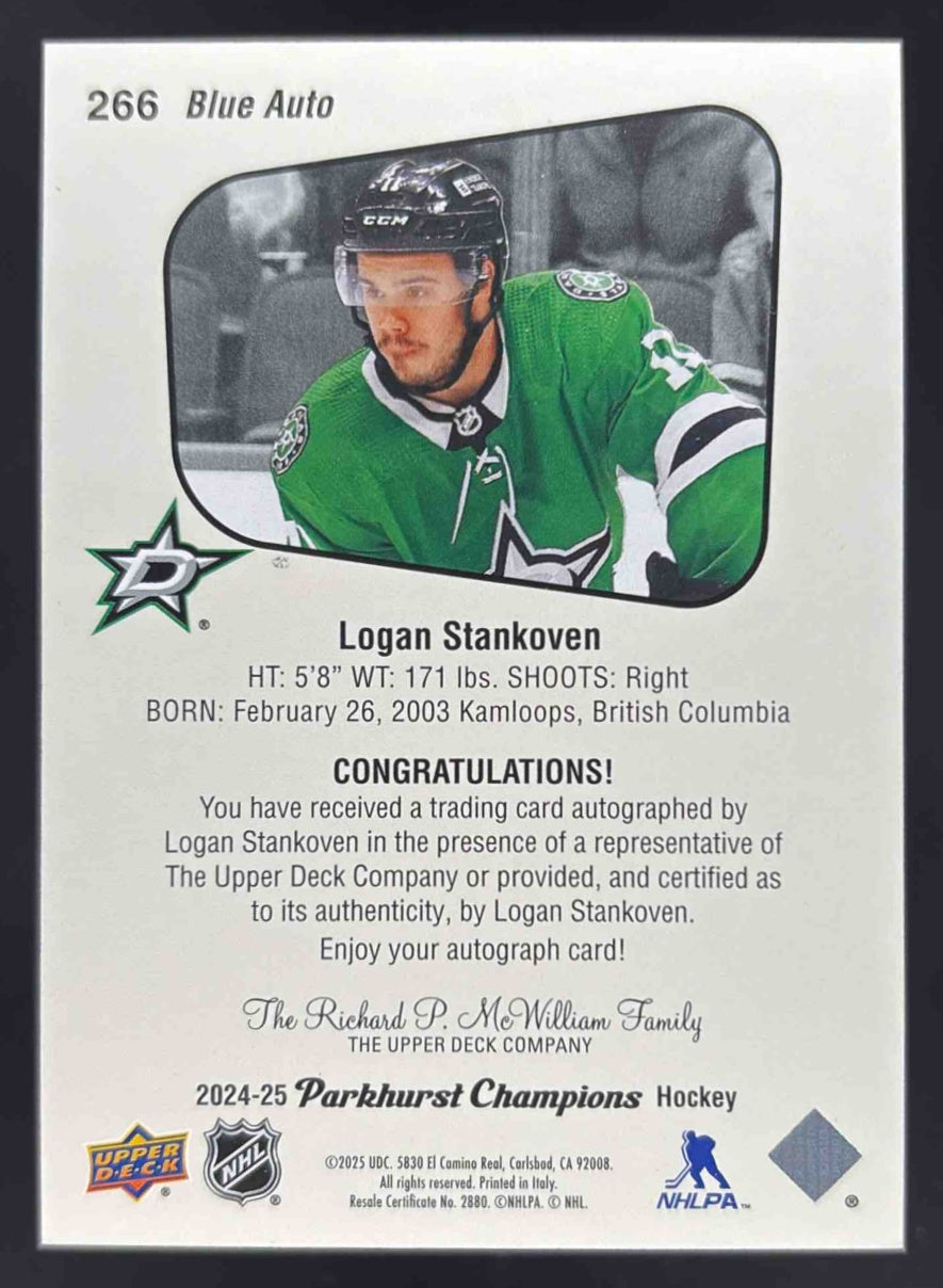 2024-25 Parkhurst Champions Auto Blue #266 Logan Stankoven Autograph Auto /49