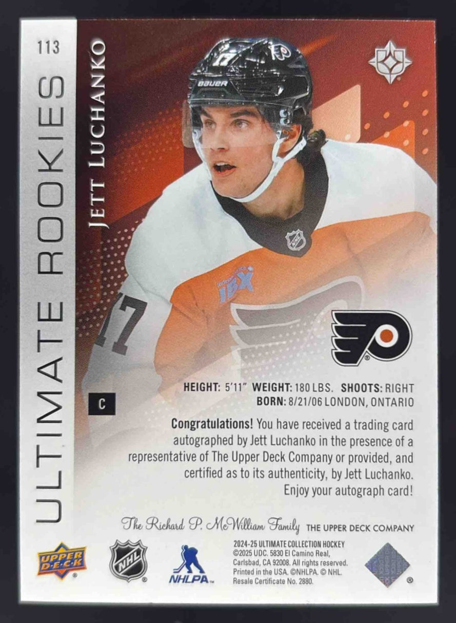 2024-25 Upper Deck Ultimate Collection #113 Jett Luchanko Autograph RC Auto /299