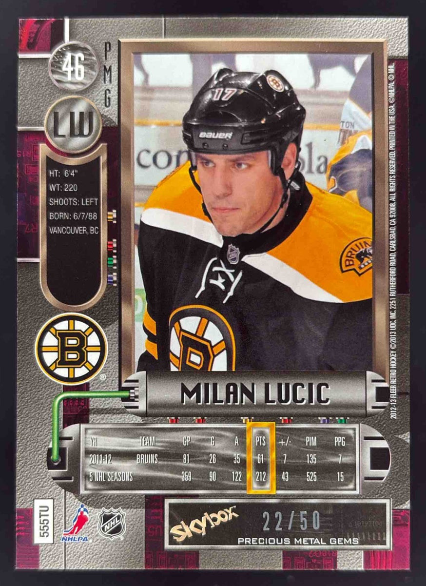 2012-13 Fleer Retro Metal Universe Precious Metal Gems Blue #46 Milan Lucic /50