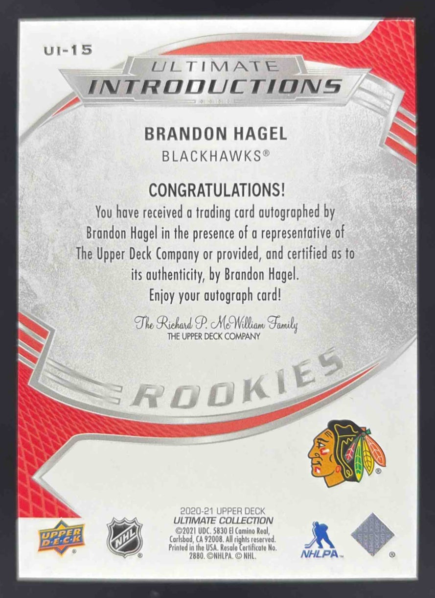 2020-21 Ultimate Collection Introductions Gold #UI-15 Brandon Hagel RC Auto /50