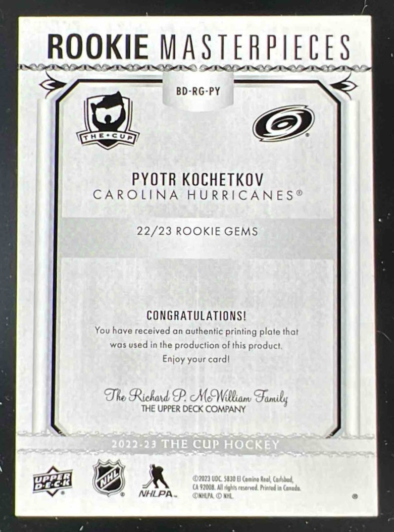 2022 The Cup Rookie Masterpieces Printing Plate Black Pyotr Kochetkov 1/1