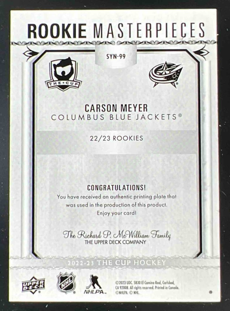 2022-23 The Cup Rookie Masterpieces Printing Plate Cyan Carson Meyer 1/1