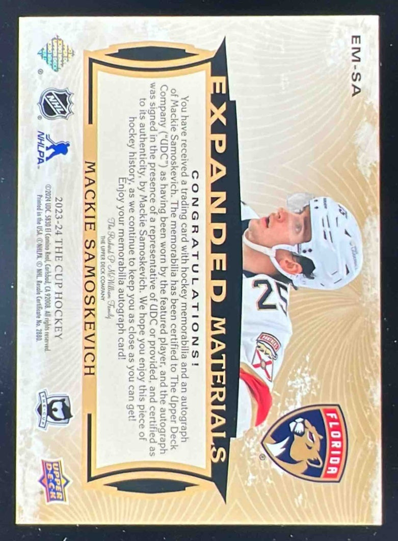 2023-24 The Cup Expanded Materials #EM-SA Mackie Samoskevich Autograph Auto /25