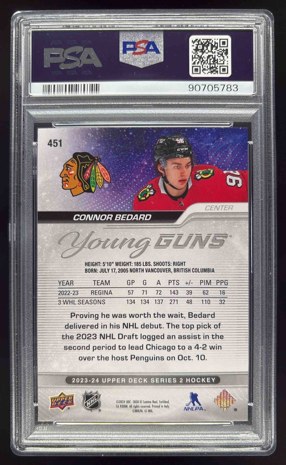 2023-24 Upper Deck #451 Connor Bedard Young Guns RC PSA 10