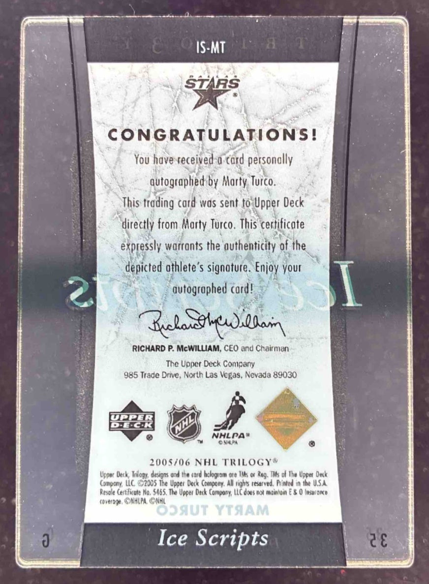 2005-06 Upper Deck Trilogy Ice Scripts #IS-MT Marty Turco Autograph Auto