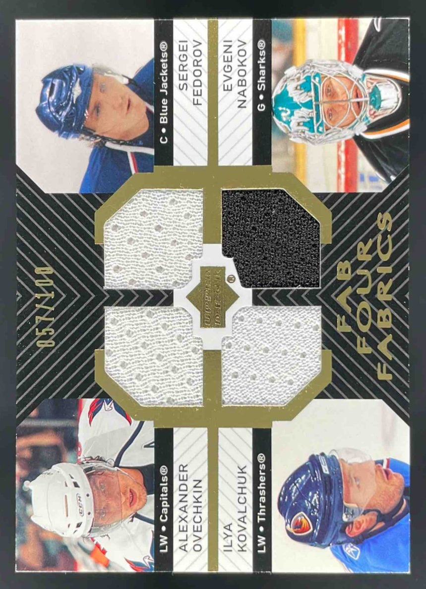 2007 Upper Deck Fab Four Fabrics Evgeni Nabokov Kovalchuk Fedorov Ovechkin /100