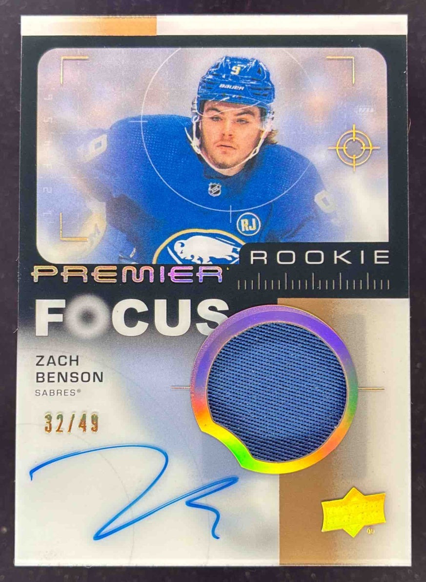 2023-24 UD Premier Focus Auto Patch Rookies Gold #PFR-ZB Zach Benson Auto /49
