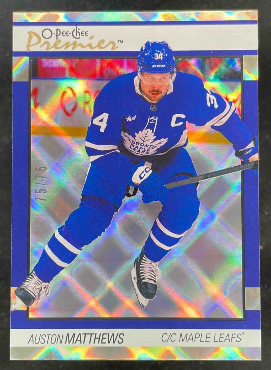 2025 O-Pee-Chee Premier Diamond Rainbow Foilboard #P-9 Auston Matthews /75