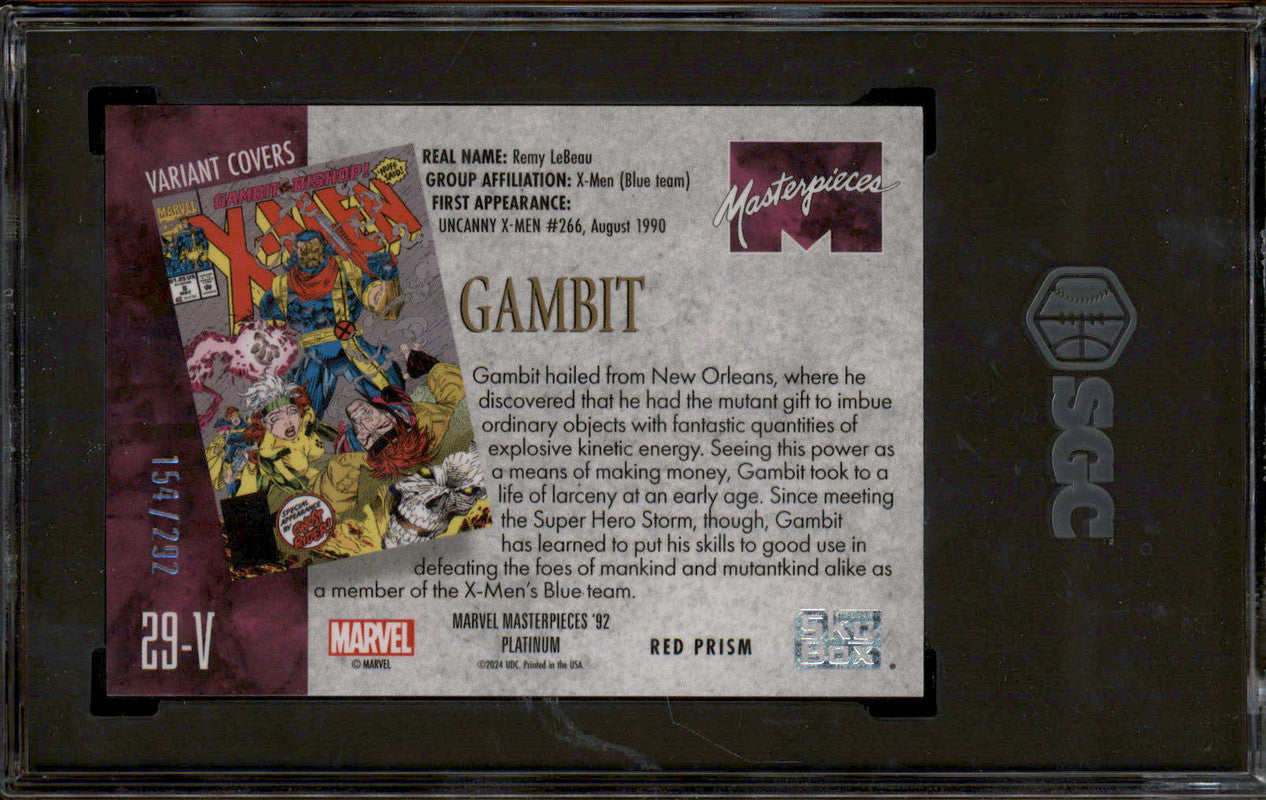 2024 Marvel Masterpieces 92 Platinum Variant Cover Red Prism Gambit /292 SGC 9.5