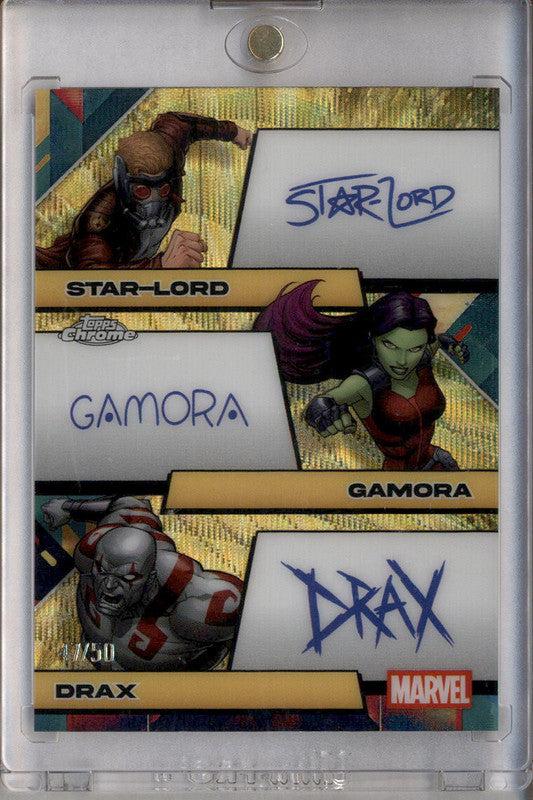 2025 Topps Marvel Facsimile Triple Auto Gold Wave Star-Lord Gamora Drax /50