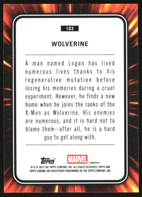 2025 Topps Chrome Marvel Spider Web Refractor #103 Wolverine /399