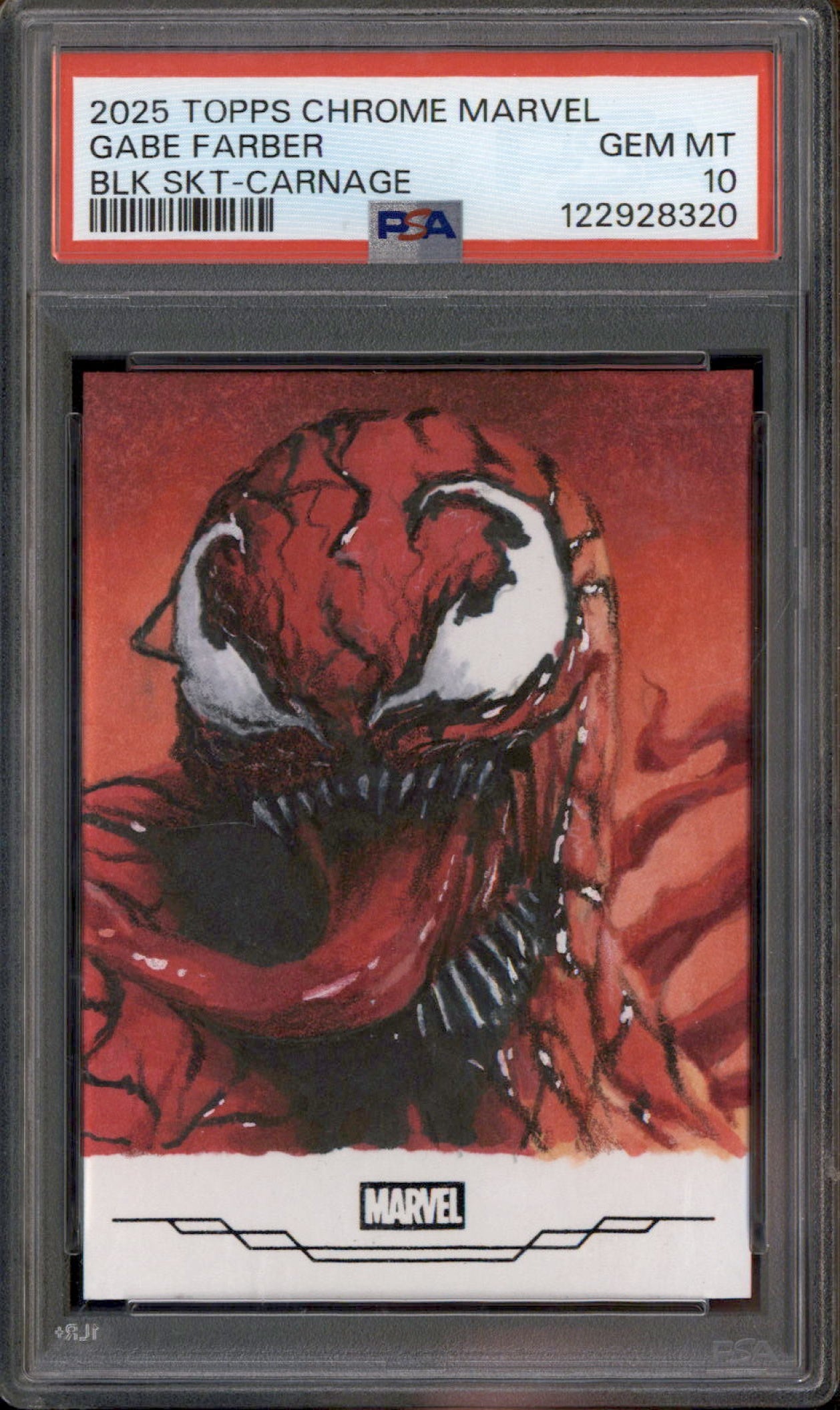 2025 Topps Chrome Marvel Black Sketch Card Gabe Farber Carnage 1/1 PSA 10