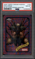 2025 Topps Chrome Marvel Blue Red Spider Web Refractor #103 Wolverine /62 PSA 8