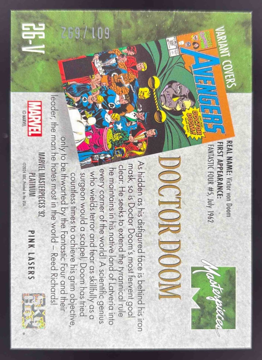 2024 UD Marvel Masterpieces '92 Variant Cover Pink Lasers #26-V Doctor Doom /692