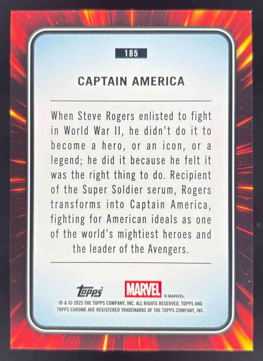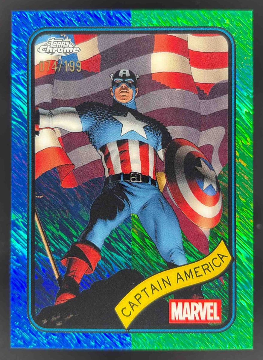 2025 Topps Chrome Marvel Blue Green Shimmer Refractor #185 Captain America /199