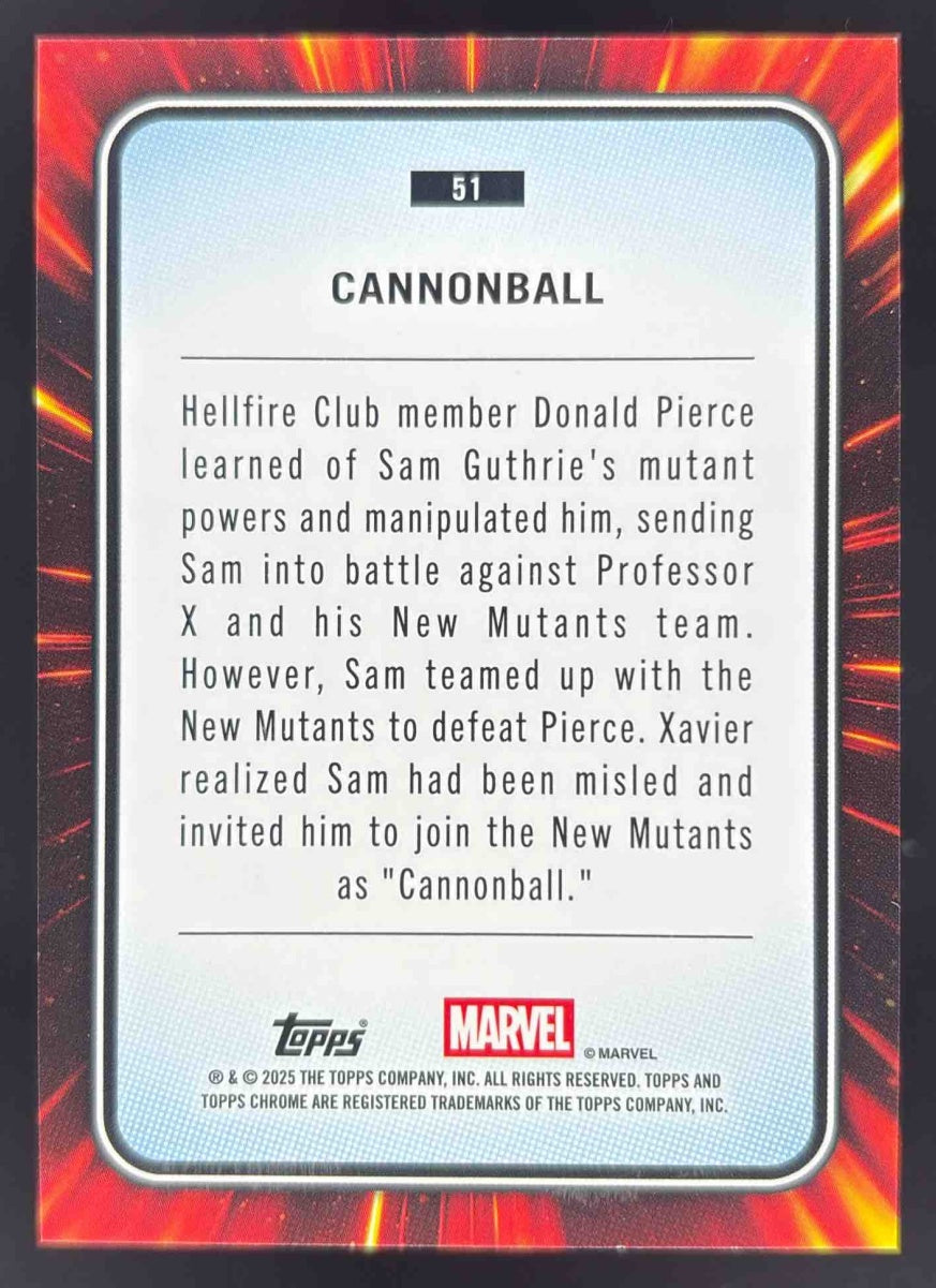 2025 Topps Chrome Marvel Yellow Lava Refractor #51 Cannonball
