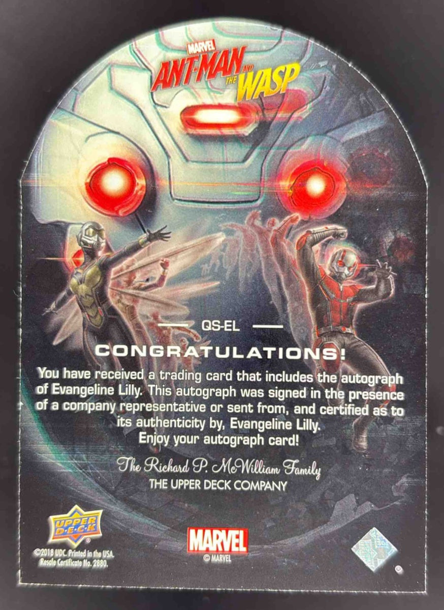 2018 UD Marvel Ant-Man the Wasp Quantum Stars Autos Portrait Evangeline Lilly