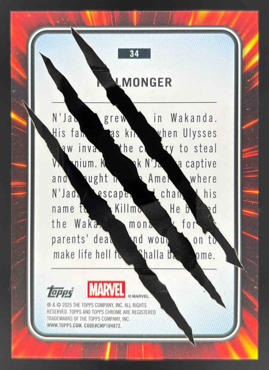 2025 Topps Chrome Marvel Clawed Chrome Refractor #34 Killmonger /20