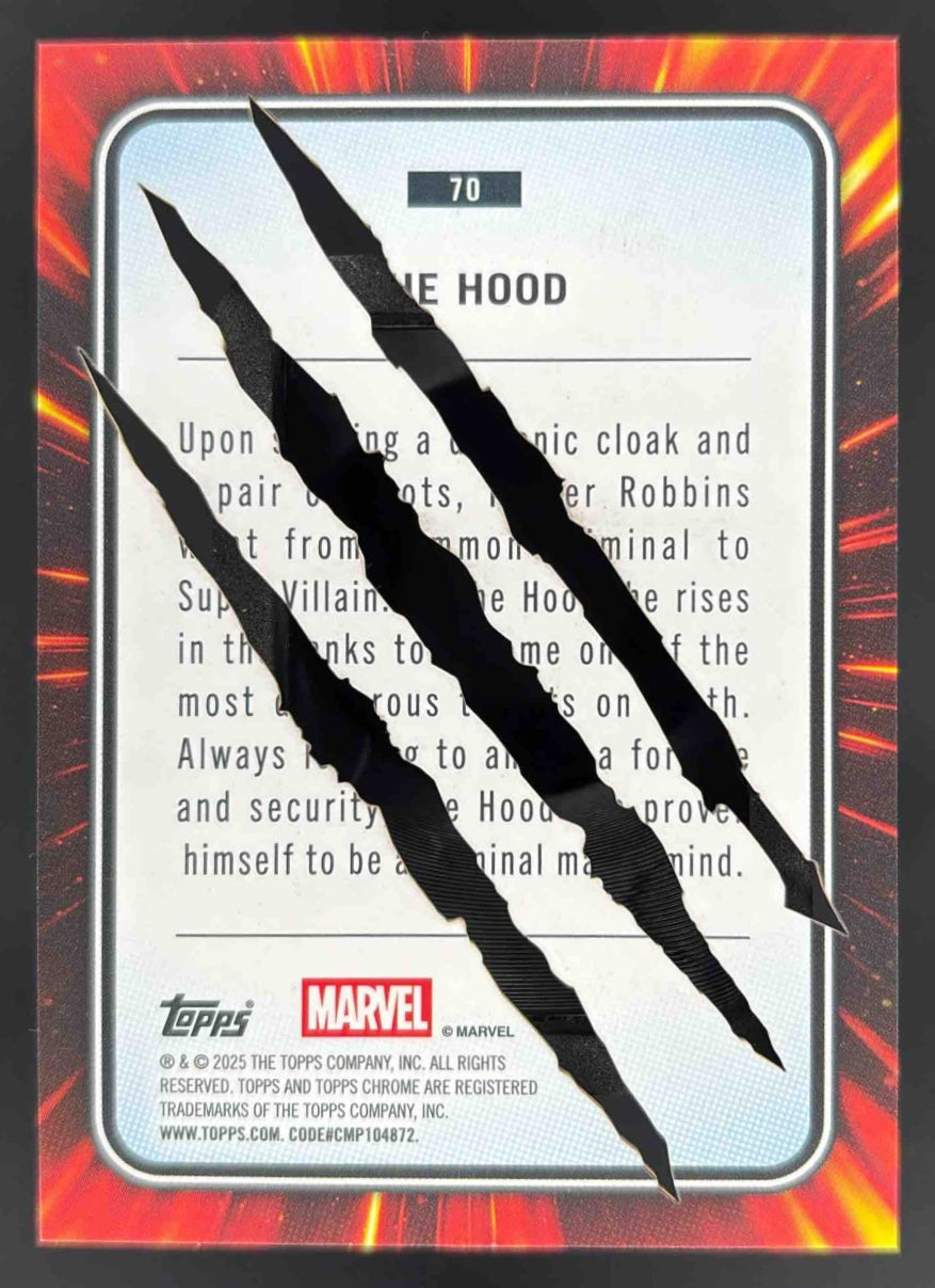 2025 Topps Chrome Marvel Clawed Chrome Refractor #70 The Hood /20