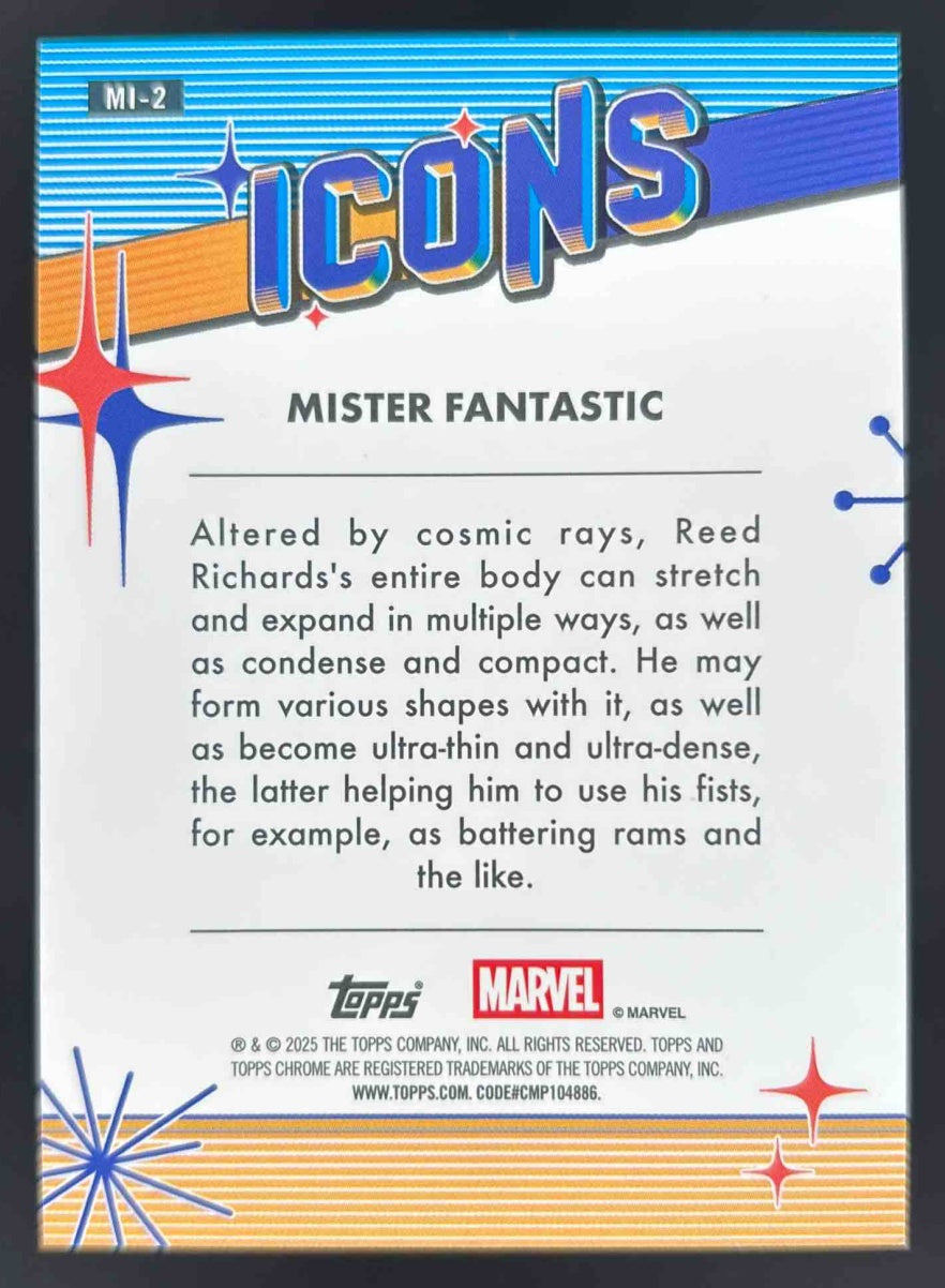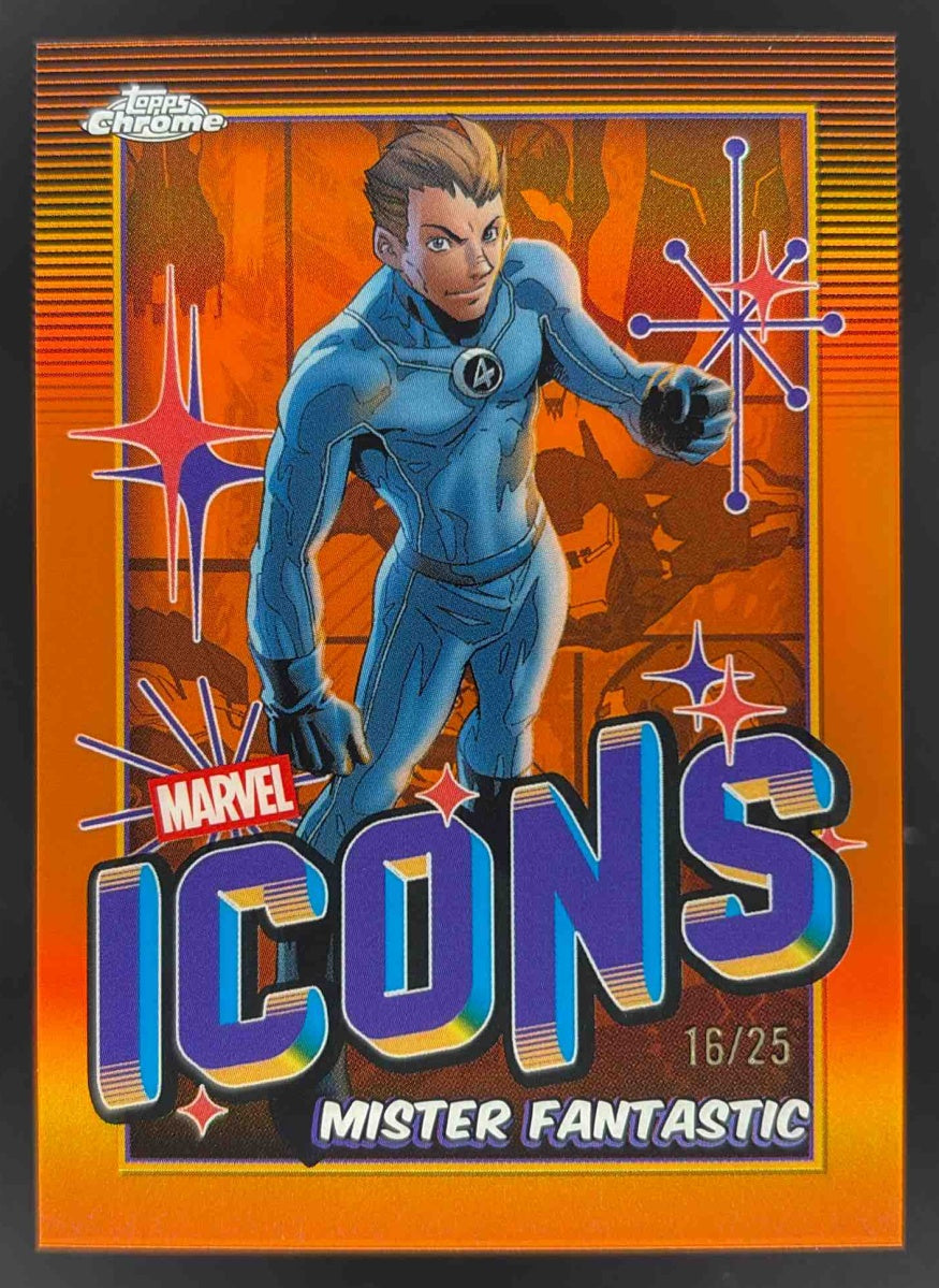 2025 Topps Chrome Marvel Marvel Icons Orange Refractor #MI2 Mister Fantastic /25