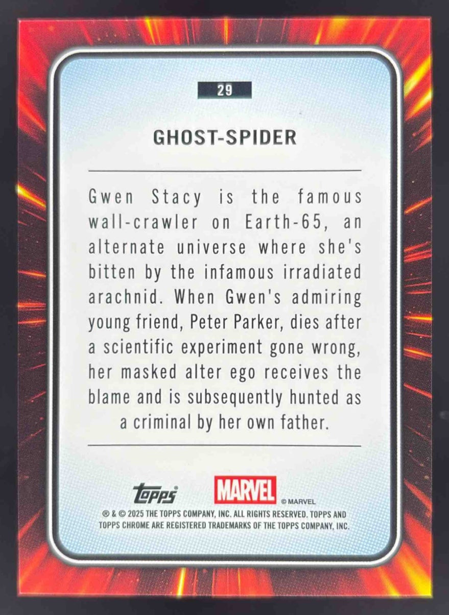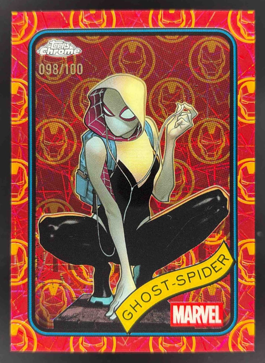 2025 Topps Chrome Marvel Iron Man Red Gold Lazer Refractor #29 Ghost-Spider /100