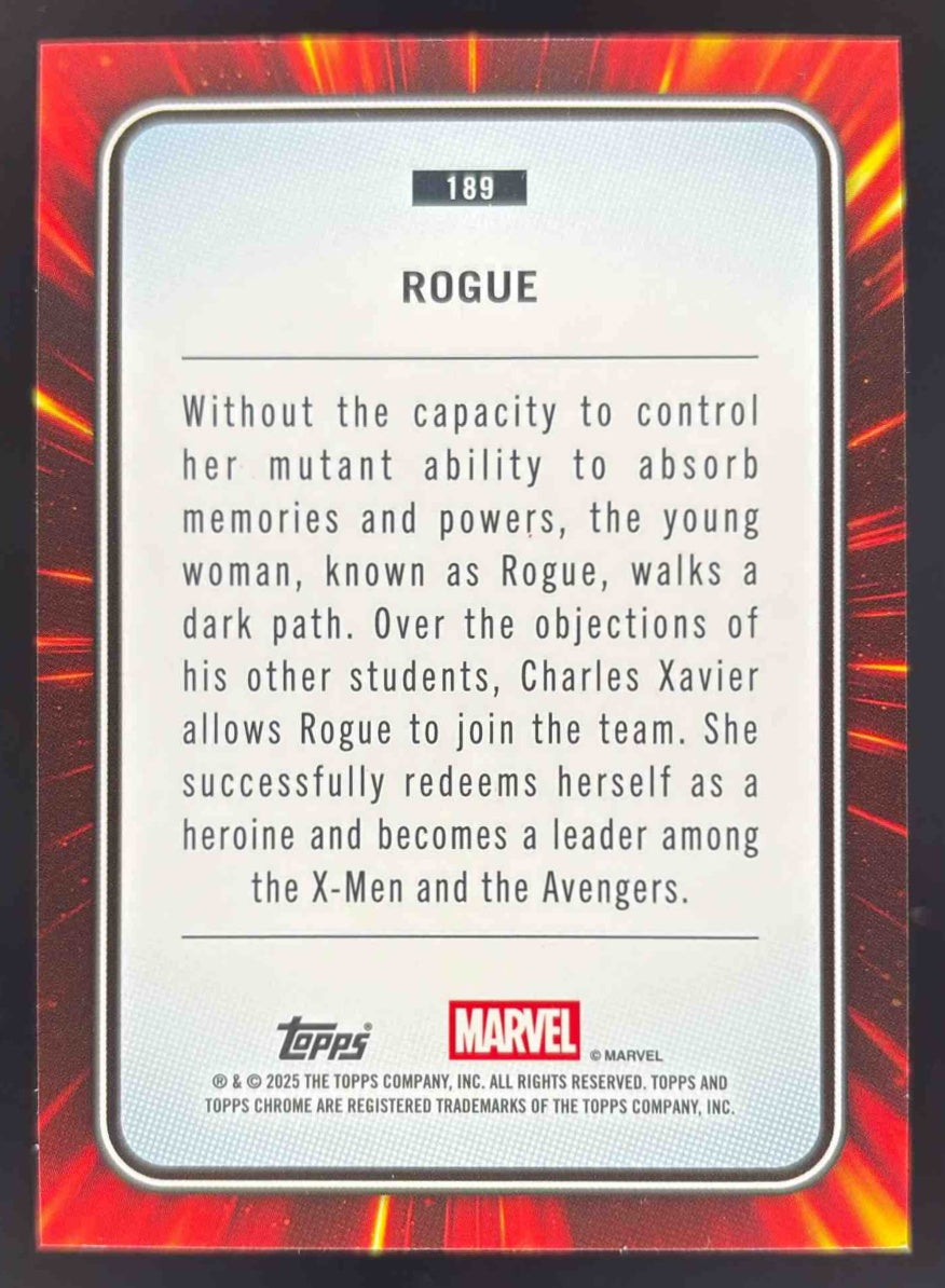 2025 Topps Chrome Marvel Sapphire Gold Sapphire Refractor #189 Rogue /50