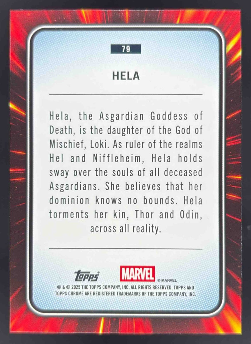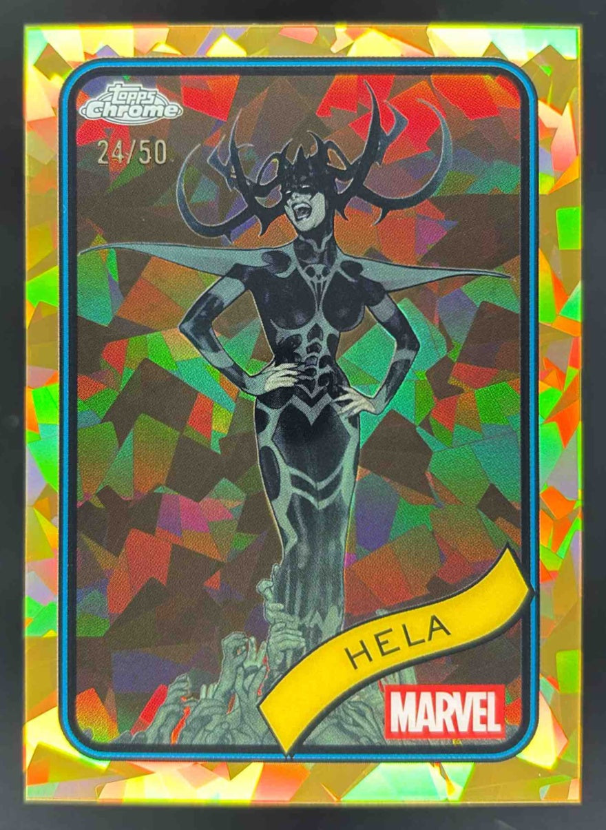 2025 Topps Chrome Marvel Sapphire Gold Sapphire Refractor #79 Hela /50