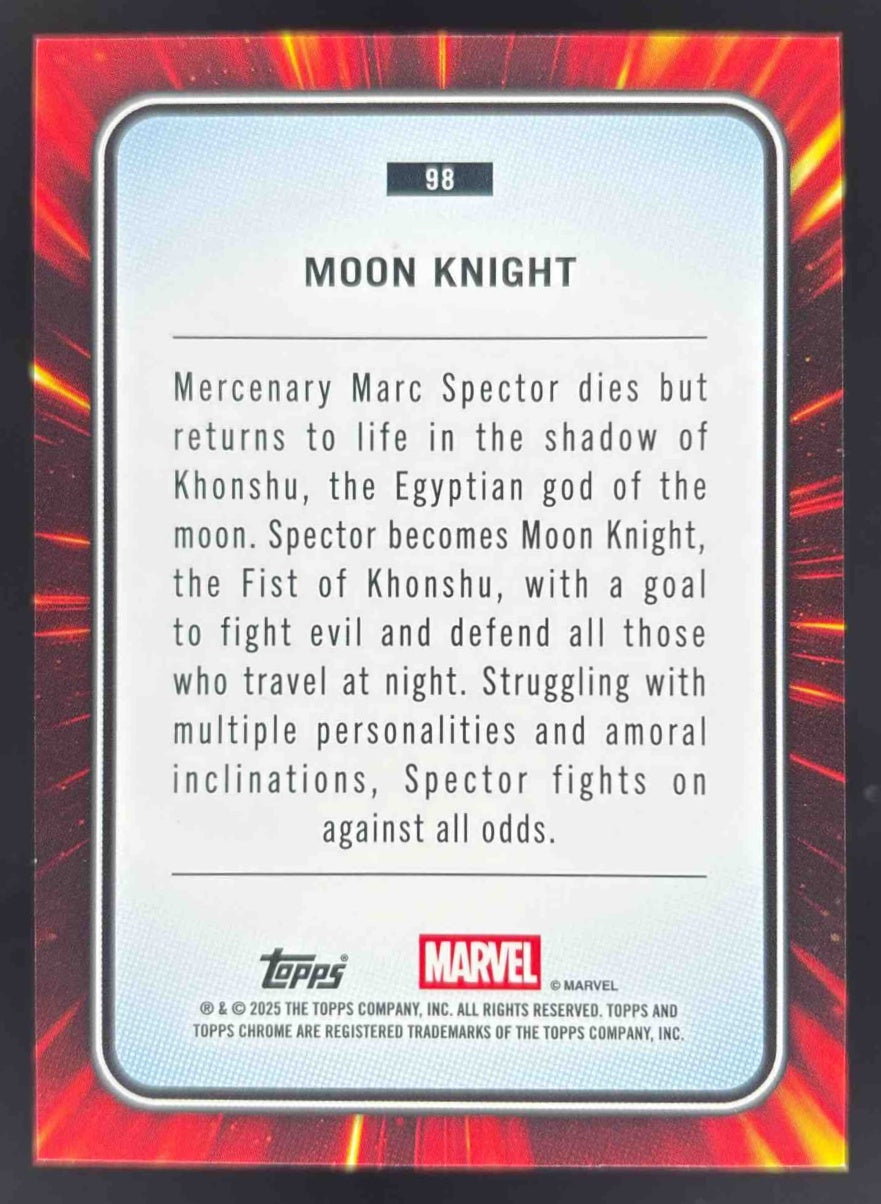 2025 Topps Chrome Marvel Iron Man Red & Gold Lazer Refractor Moon Knight /100