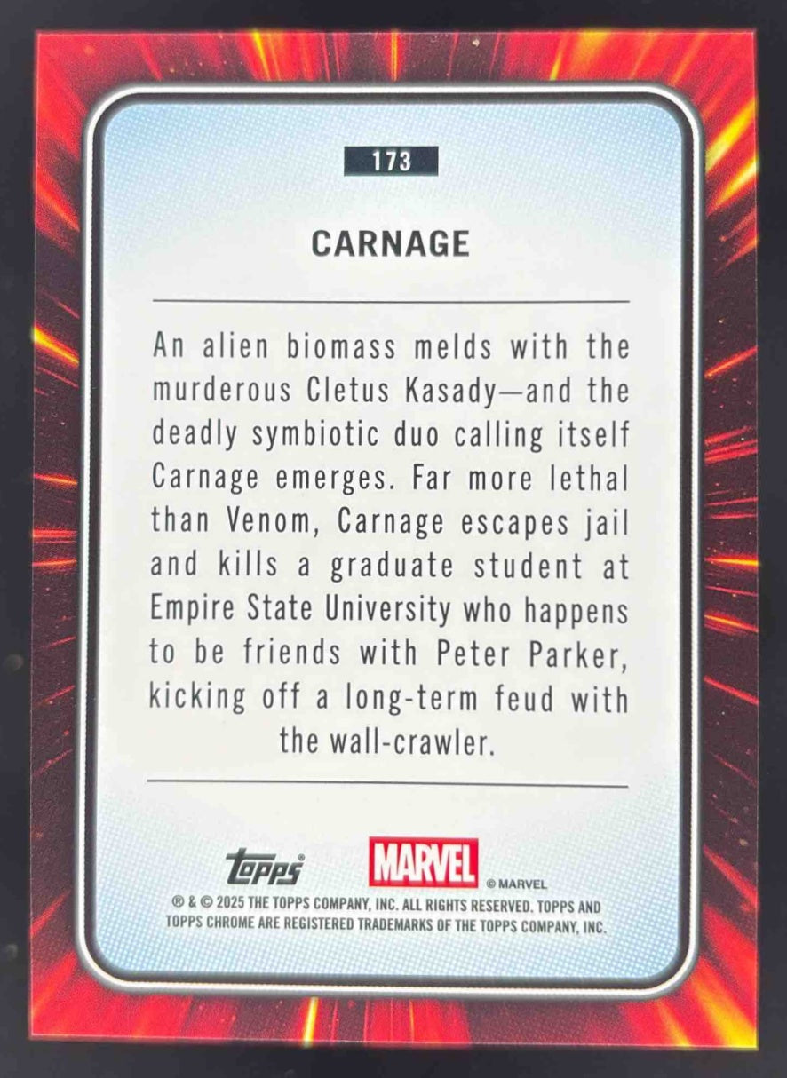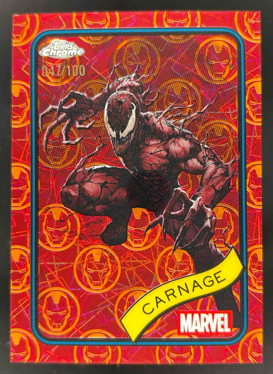 2025 Topps Chrome Marvel Iron Man Red & Gold Lazer Refractor #173 Carnage /100