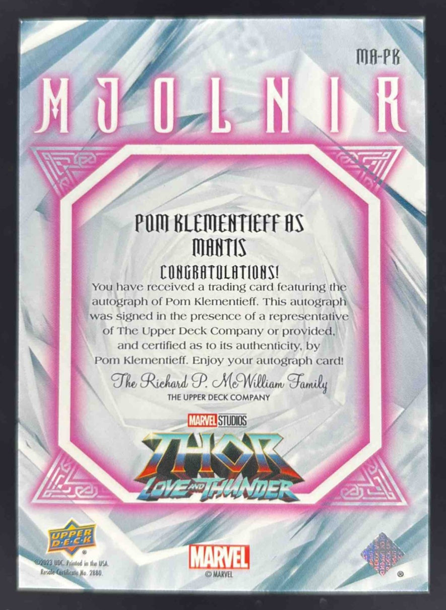 2023 Upper Deck Marvel Thor Love and Thunder Mjolnir Pom Klementieff Mantis Auto