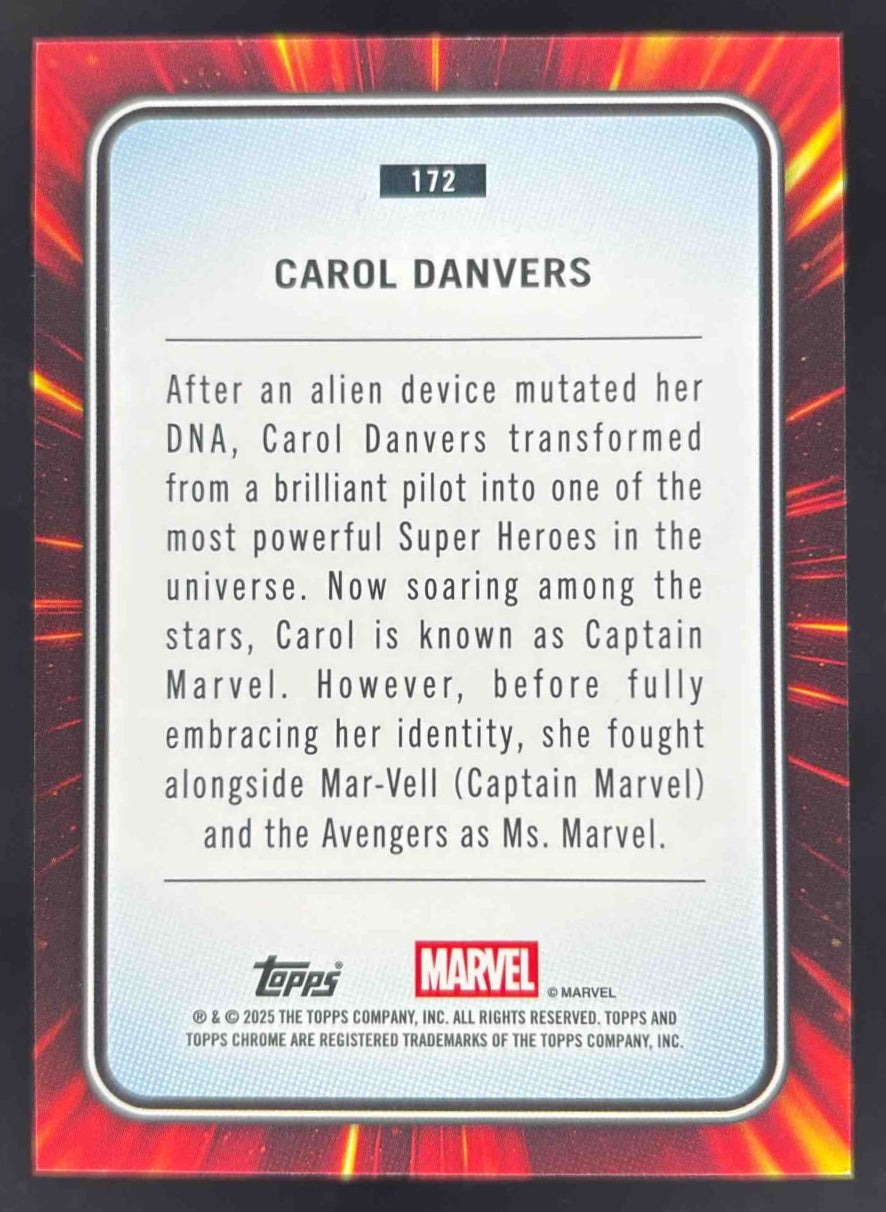 2025 Topps Chrome Marvel Blue & Red Spider Web Refractor #172 Carol Danvers /62