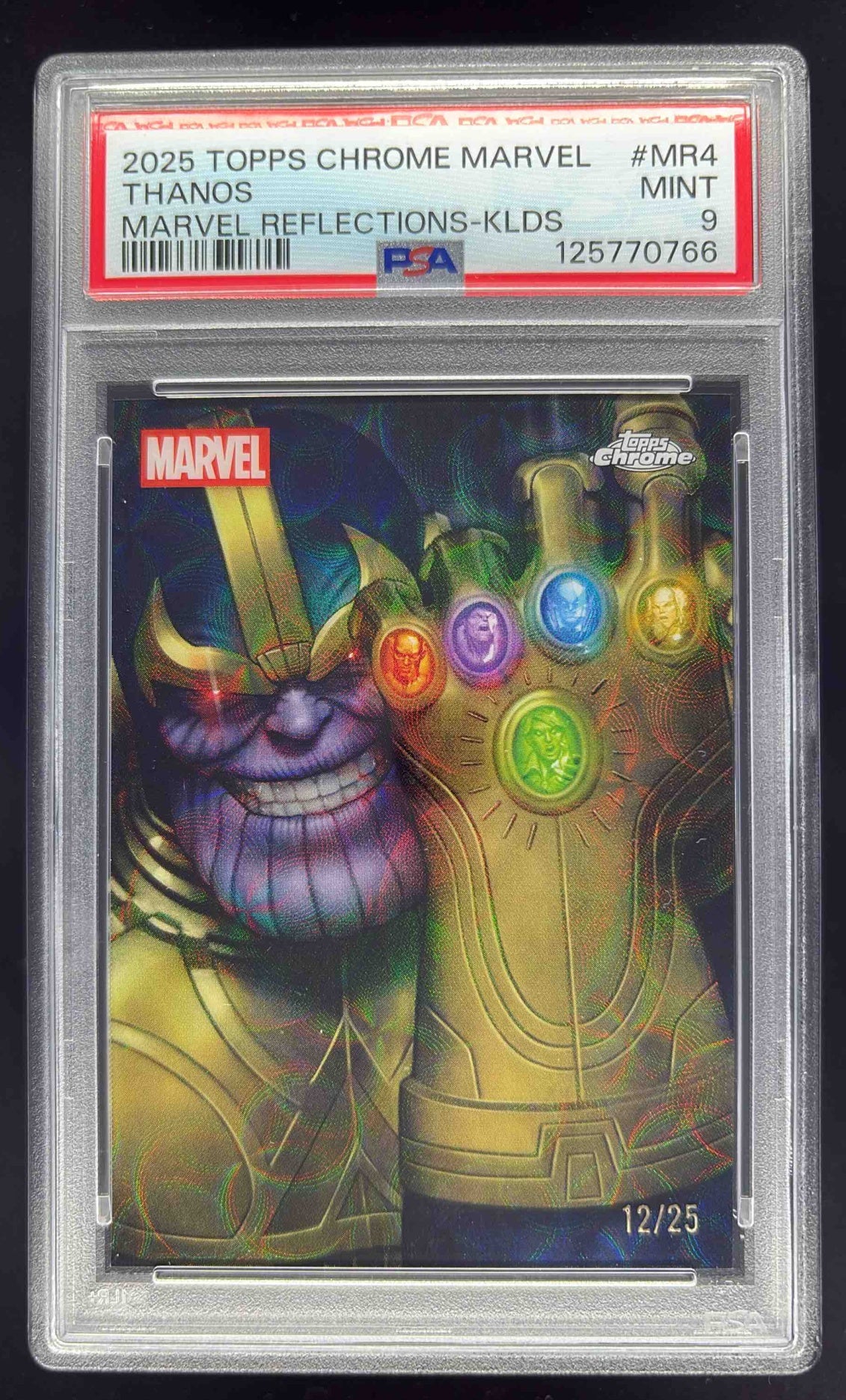 2025 Topps Chrome Marvel Marvel Reflections Kaleidoscope #MR-4 Thanos /25 PSA 9
