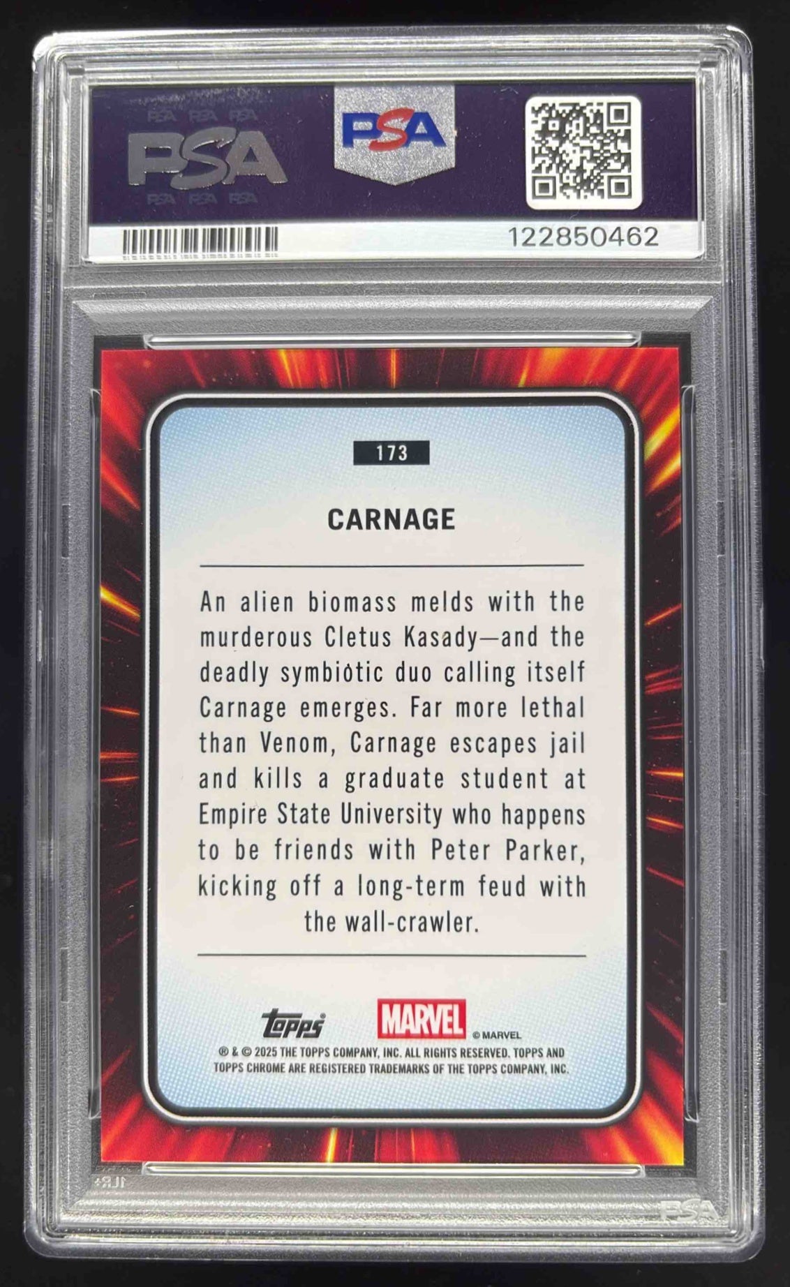 2025 Topps Chrome Marvel Orange Refractor #173 Carnage /25 PSA 10