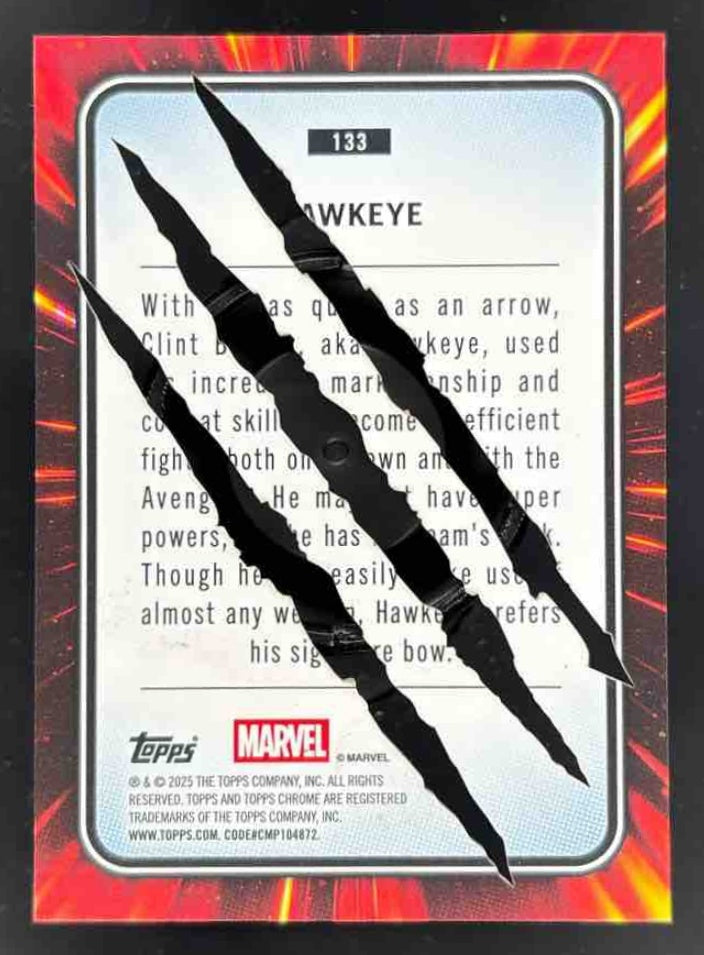 2025 Topps Chrome Marvel Clawed Chrome Black Refractor #133 Hawkeye /10