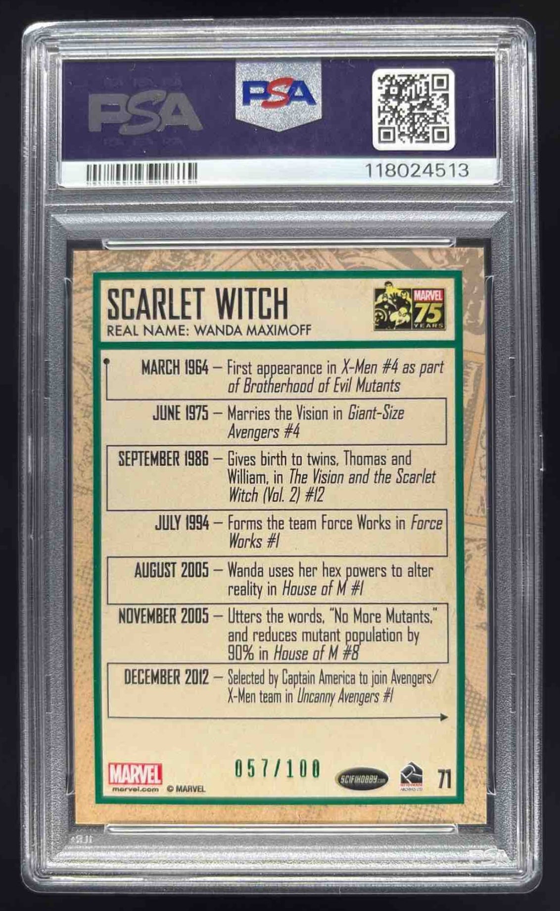 2014 Marvel 75th Anniversary Emerald #71 Scarlet Witch /100 PSA 9