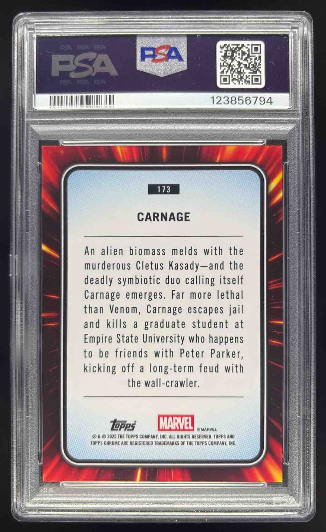 2025 Topps Chrome Marvel Spider Web Refractor #173 Carnage /399 PSA 10
