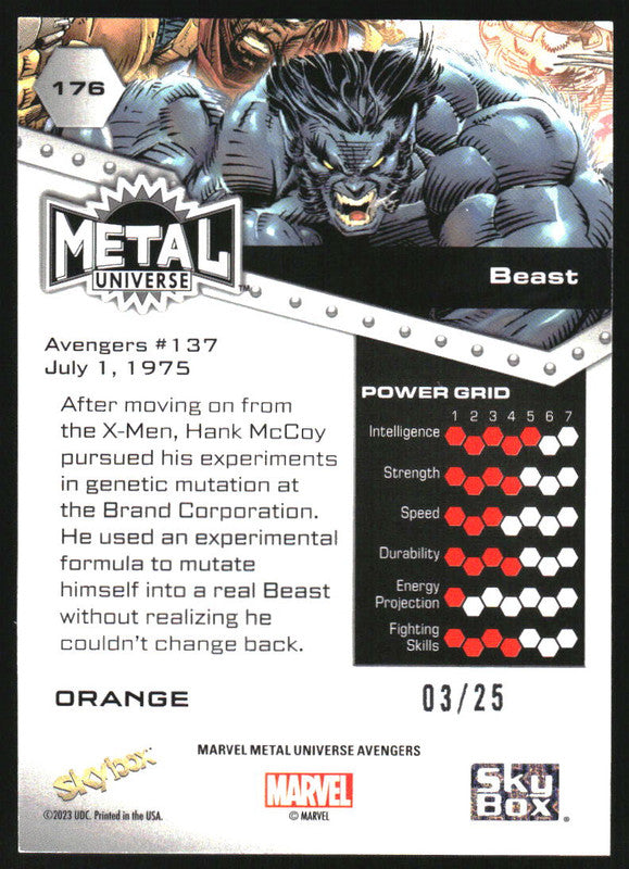 2024 SkyBox Marvel Metal Universe Avengers Orange FX #176 Beast /25