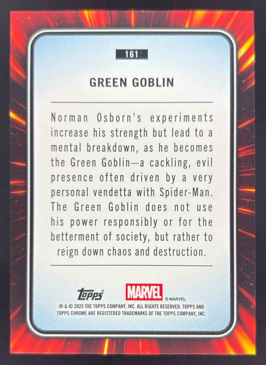 2025 Topps Chrome Marvel Spider Web Refractor #161 Green Goblin /399