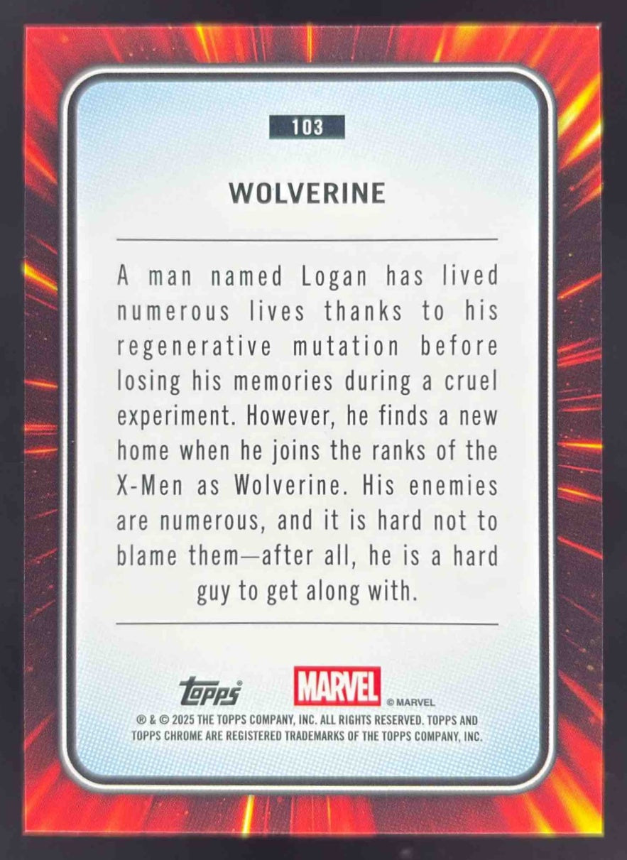 2025 Topps Chrome Marvel Hulk Green Lazer Refractor #103 Wolverine /99
