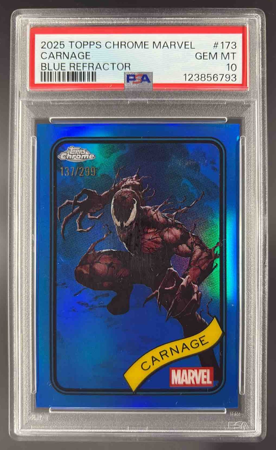 2025 Topps Chrome Marvel Blue Refractor #173 Carnage /299 PSA 10