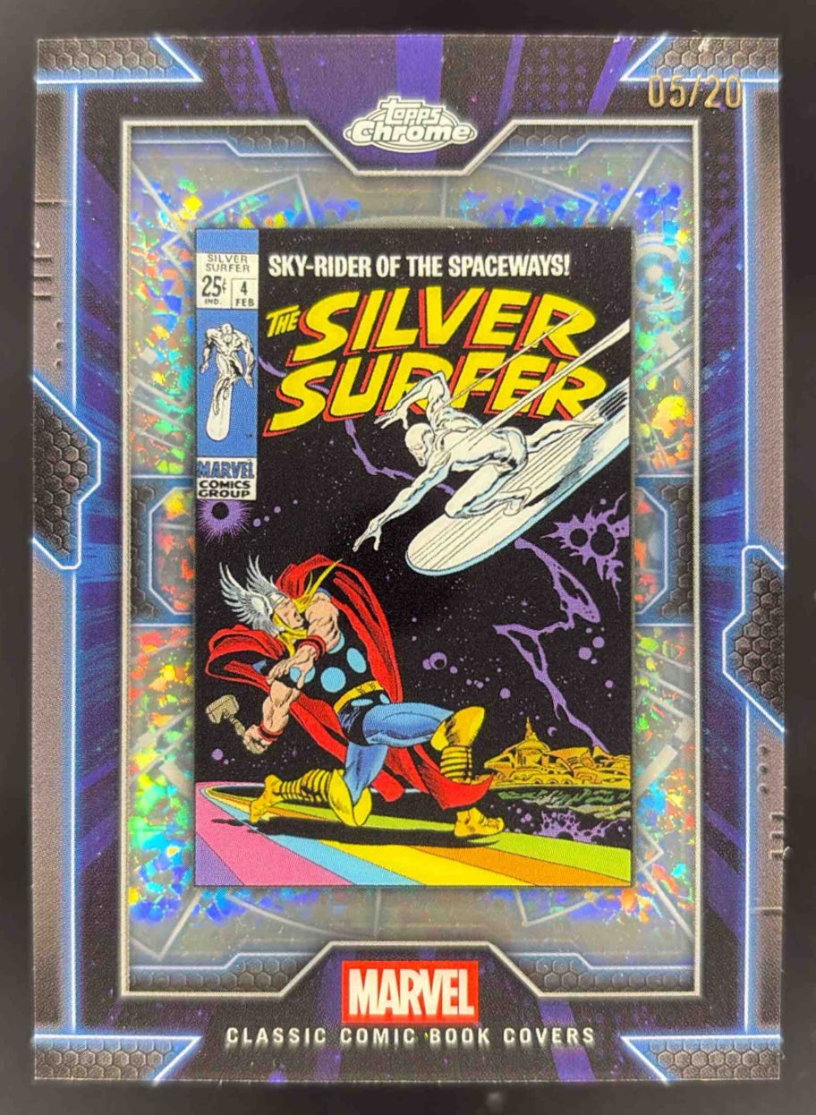 2025 Topps Chrome Marvel Comic Cover Shadowbox Mini Diamond Silver Surfer #4 /20