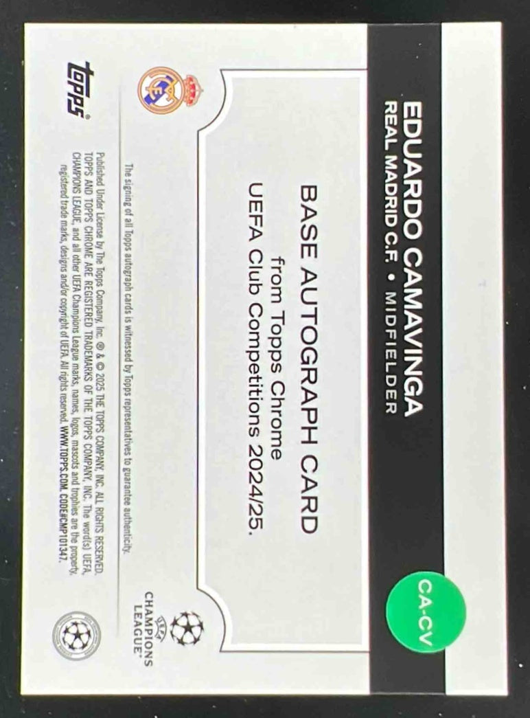 2024-25 Topps Chrome UEFA Aqua Lava Refractor #CA-CV Eduardo Camavinga Auto /199