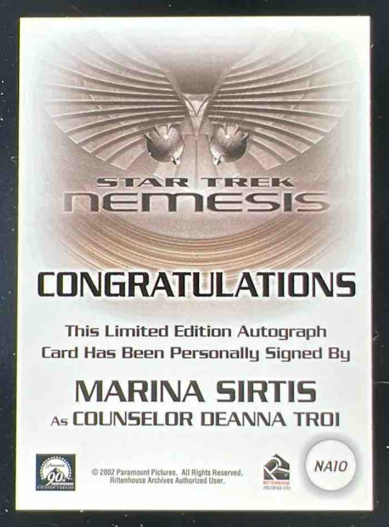 2002 Rittenhouse Star Trek: Nemesis Nemesis Autographs #NA10 Marina Sirtis Auto
