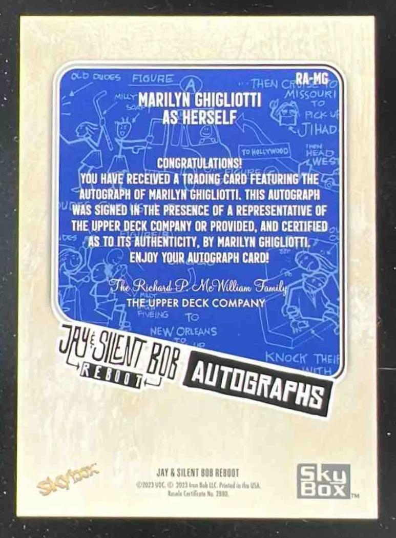2023 Skybox Jay & Silent Bob Reboot Reboot #RA-MG Marilyn Ghigliotti Auto