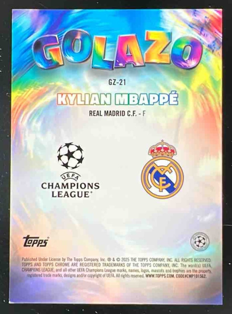 2024-25 Topps Chrome UEFA Golazo Aqua Refractor #GZ-21 Kylian Mbappe /199