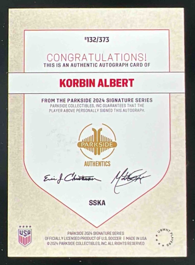 2024 Parkside USWNT 2023 Recap Signatures #SSKA Korbin Albert /373