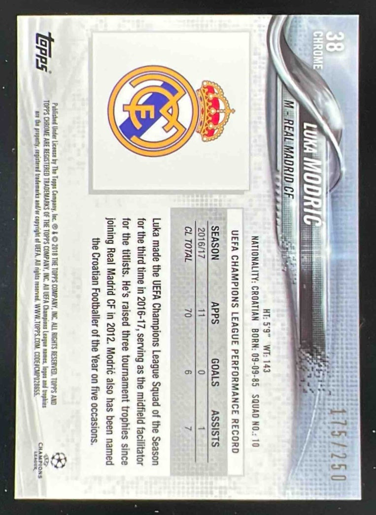 2017 Topps Chrome UEFA Champions League Purple Refractor #38 Luka Modric /250